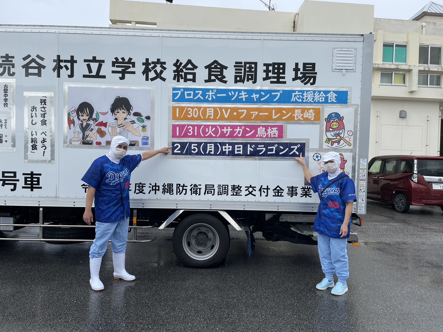 キャンプ実施期間中はキャンプを実施して頂いているチームのユニフォームを着用して給食の配送を予定しております。