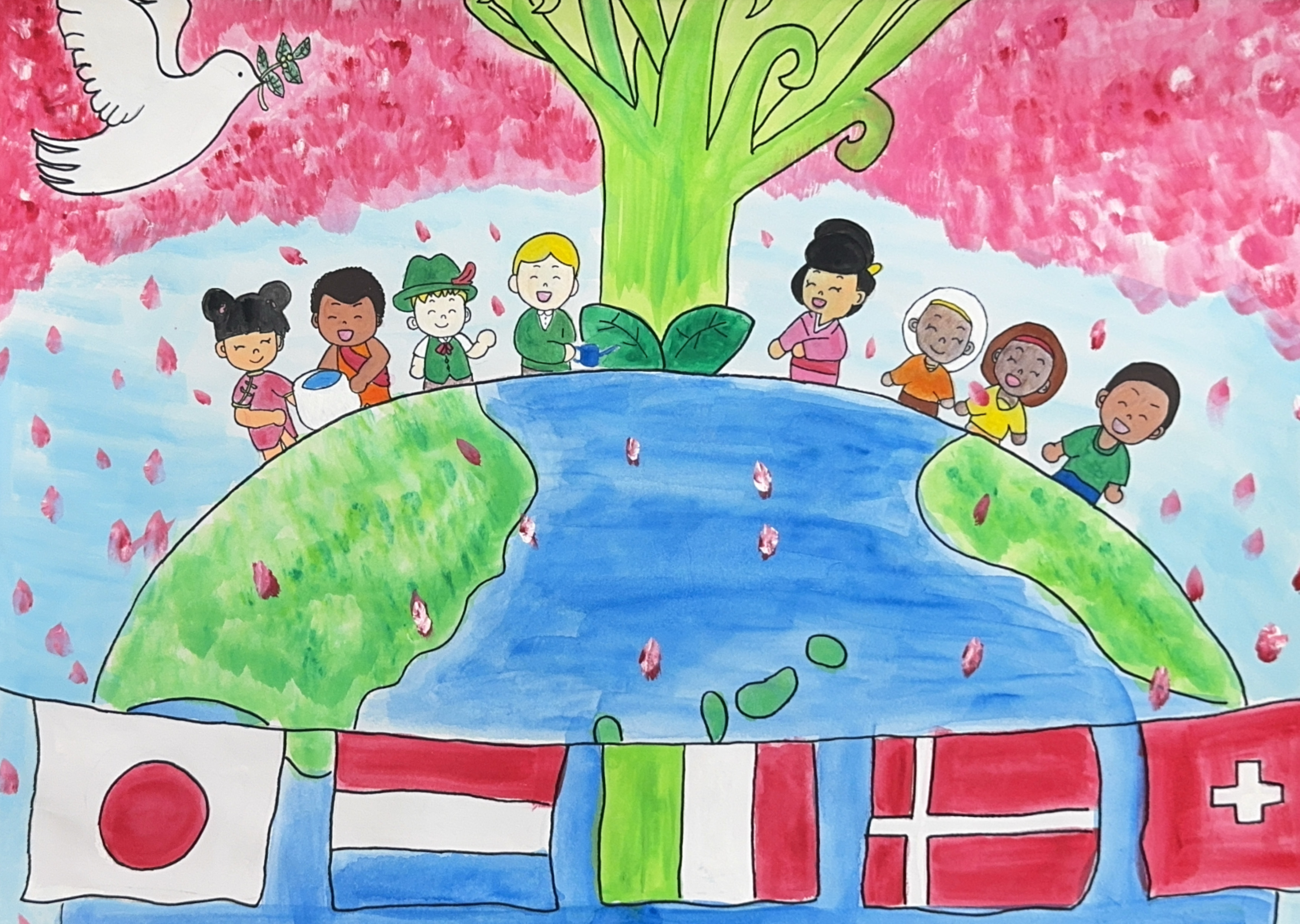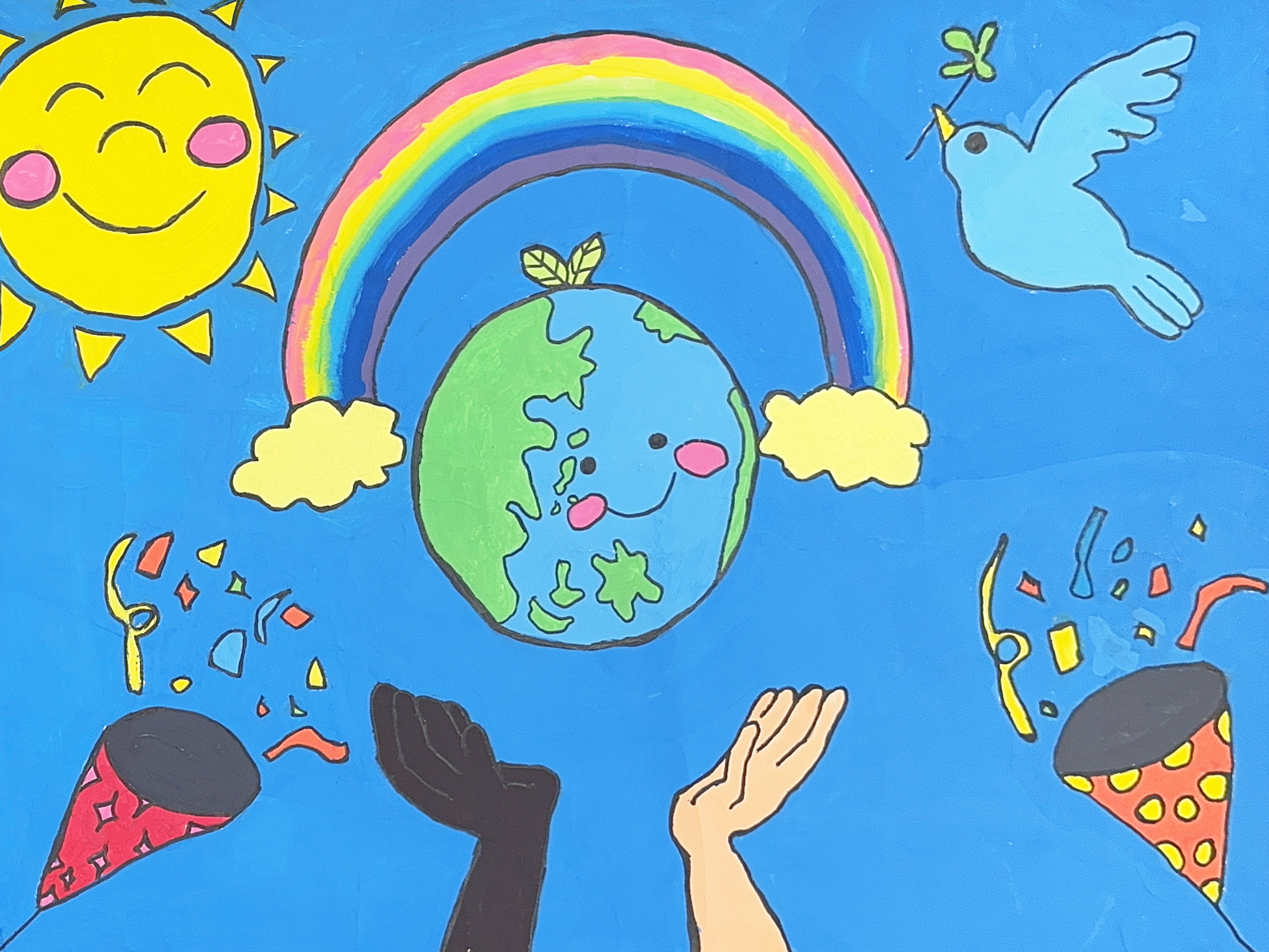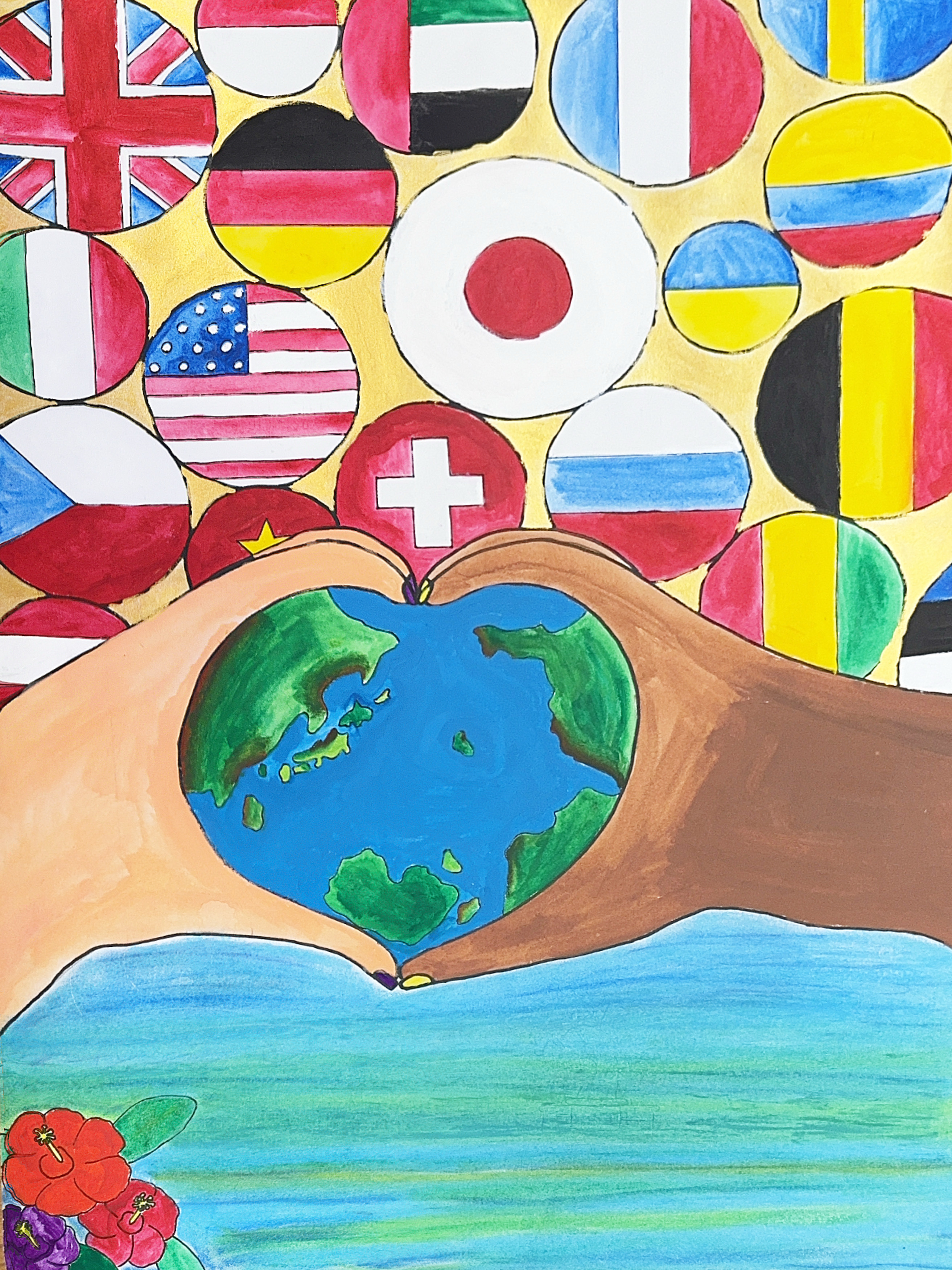 読谷小学校 | 5年 | 河野 莉央 | 世界はなかよし(JPEG:2.6MB) |