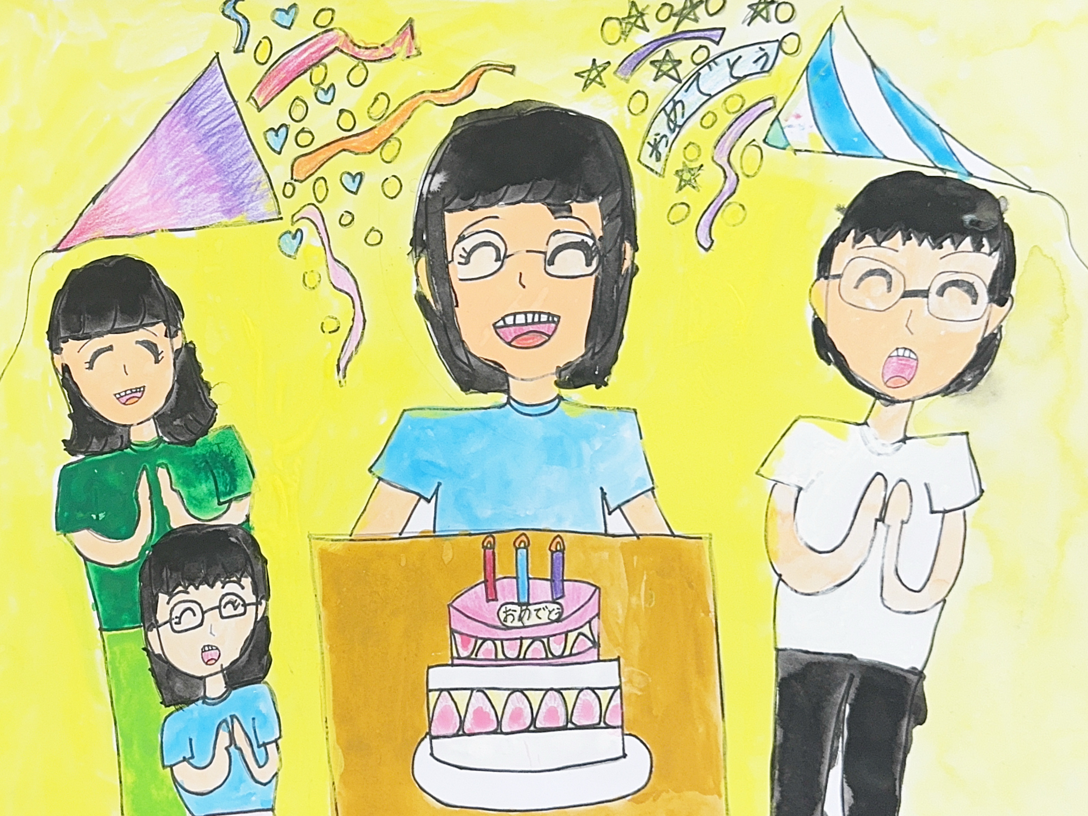 読谷小学校 | 3年 | 知花 羽笑 | 家族と笑顔(JPEG:2.9MB) |