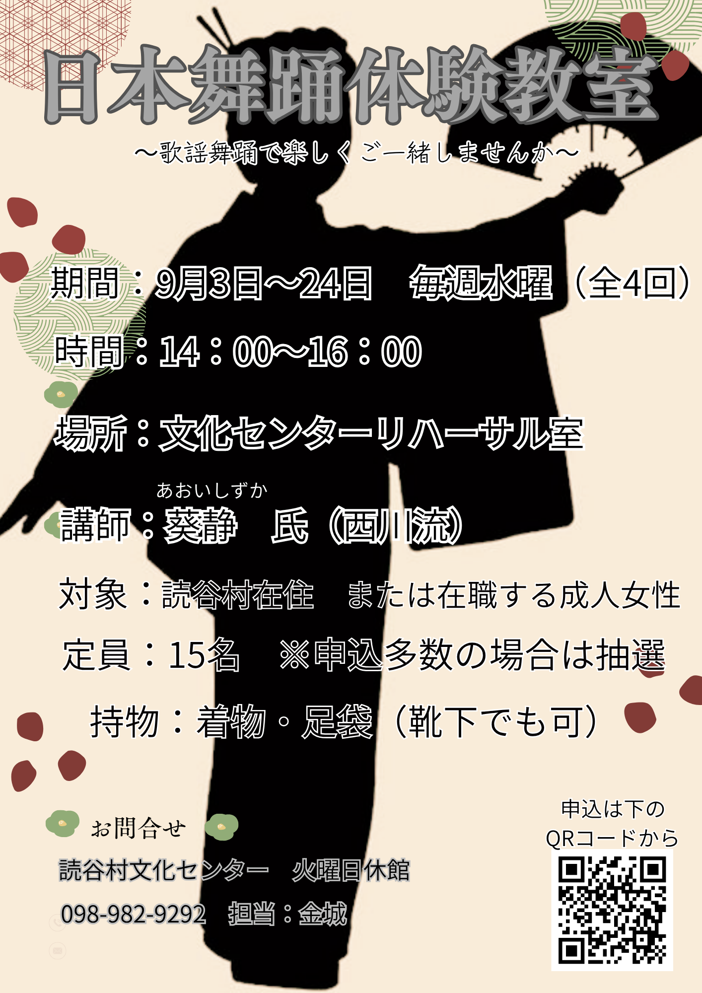 9/3~9/24 水曜日(全4回) 14:00~16:00 |